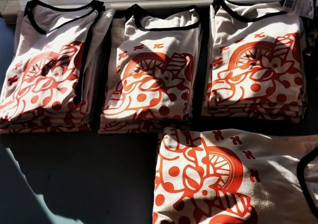 Limited edition hand embroidered cotton t-shirts made by BareStitches for the 2021 festival.